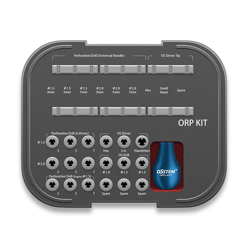 The Osstem ORP (Orthodontic Rapid Treatment) Kit is designed to enhance orthodontic outcomes by using osteoperforation to accelerate tooth movement. By forming controlled micro-holes between tooth roots, the kit promotes osteoclast activity and bone remodeling—enabling teeth to shift at nearly twice the speed of conventional orthodontic treatment.