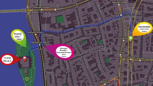 Žofín Palace is located directly on the island and can be reached within a few minutes on foot.