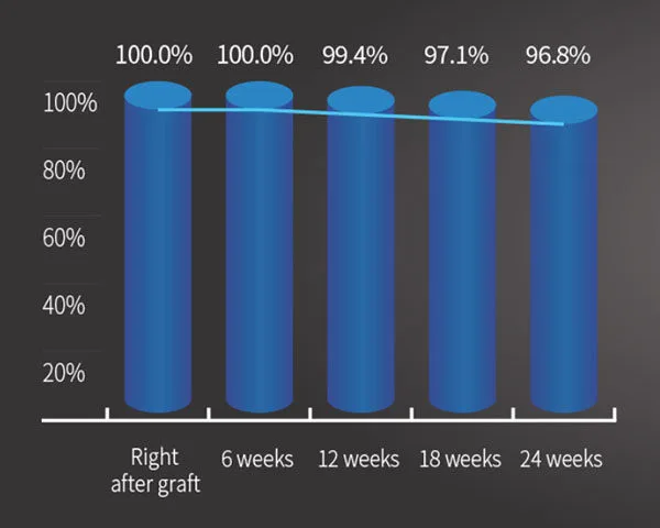 Oral bacteria has less affinity to the A-GRAFT, which significantly reduces the risk of inflammation.