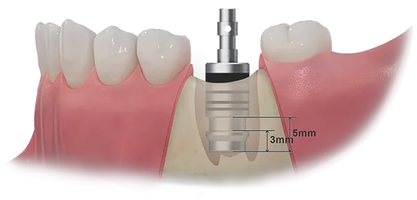 Immediate placement after extraction. Minimum of 3mm is required to achieve primarz stability.